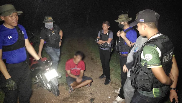 ระหว่างที่เจ้าหน้าที่ขับถรถมาตามถนนสายดังกล่าวตัดผ่านกลางทุ่งนา เปลี่ยวและมืดทำให้ขบวนการค้ายาเสพติดใช้เป็นที่ลักลอบส่งยาเสพติดกัน ก็พบรถจักรยานยนต์ขับผ่านเมื่อคนขับเห็นเจ้าหน้าที่ก็แสดงพิรุธ เจ้าหน้าที่ได้ส่งสัญญาณไฟให้จอดเพื่อขอตรวจค้นแต่คนขับเป็นชายกลับเร่งเครื่องเพื่อจะหลบหนี แต่ไม่ทันเจ้าหน้าที่ล็อกตัวไว้ได้ก่อน นำตัวไปตรวจค้นพบยาบ้าอยู่ในซองพลาสติกใสยัดไว้ในซองบุหรี่นับจำนวนได้ 154 เม็ดอยู่ในกระเป๋ากางเกง