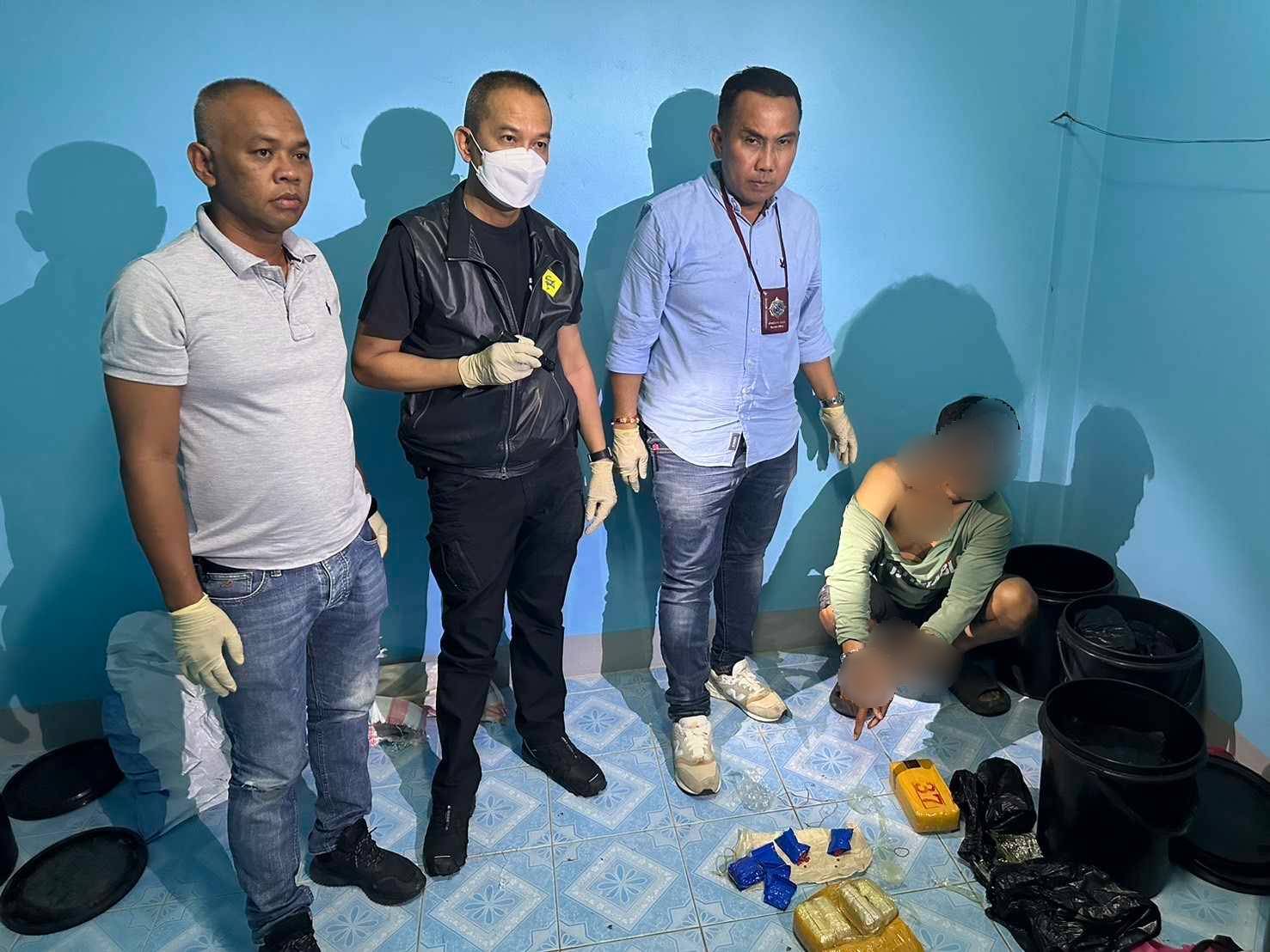 เจ้าหน้าที่ตำรวจชุดสืบสวน พร้อมเจ้าหน้าที่ ป.ป.ส.ภ.2 ได้เข้าทำการตรวจสอบที่ห้องแถวสีเทา ที่
