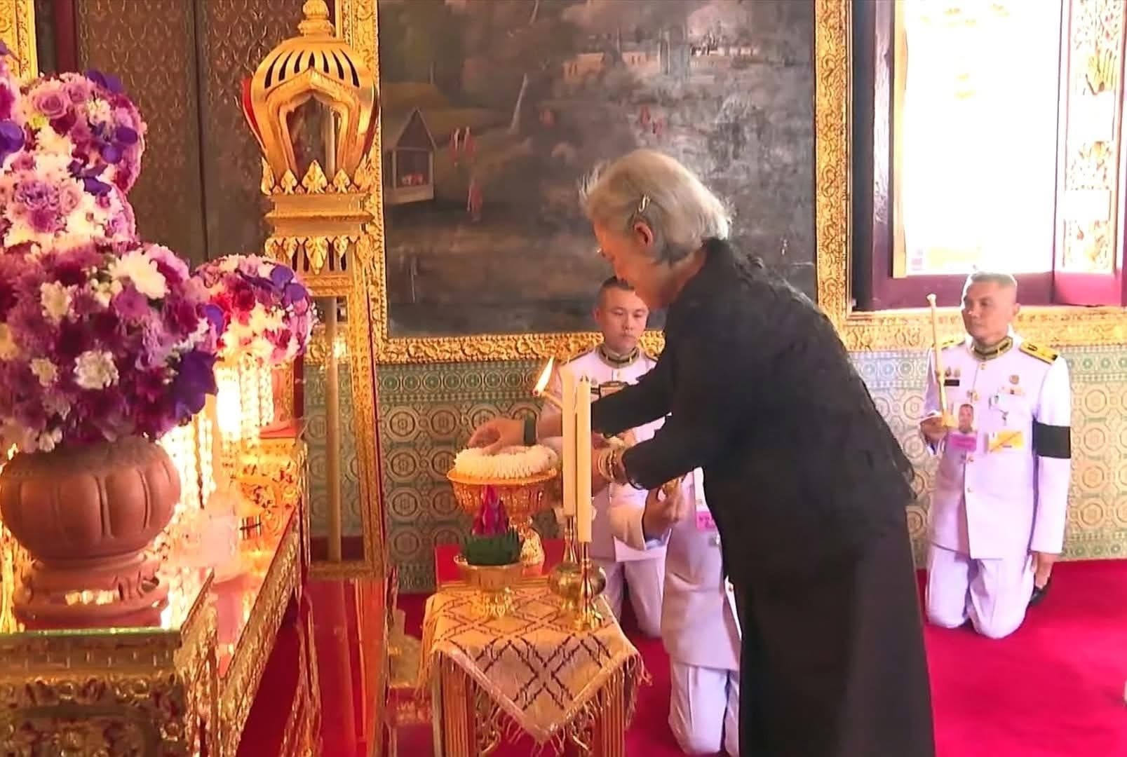 จากนั้น ทรงพระดำเนินเข้าพระวิหารพระพุทธไสยยาสน์ ทรงวางพวงมาลัย และทรงจุดธูปเทียนเครื่องนมัสการท้ายที่นั่งบูชาพระพุทธไสยยาสน์ ซึ่งเป็นพระพุทธรูปปูนปั้นสมัยอยุธยา มีความยาว 19.50 เมตร พระพุทธบาทเขียนลายทองรดน้ำรูปมงคล 108 และทรงวางพวงมาลัยถวายสักการะพระพุทธรูปศิลาขาว และพระนนทมุนินท์ พระพุทธรูปประจำจังหวัดนนทบุรี