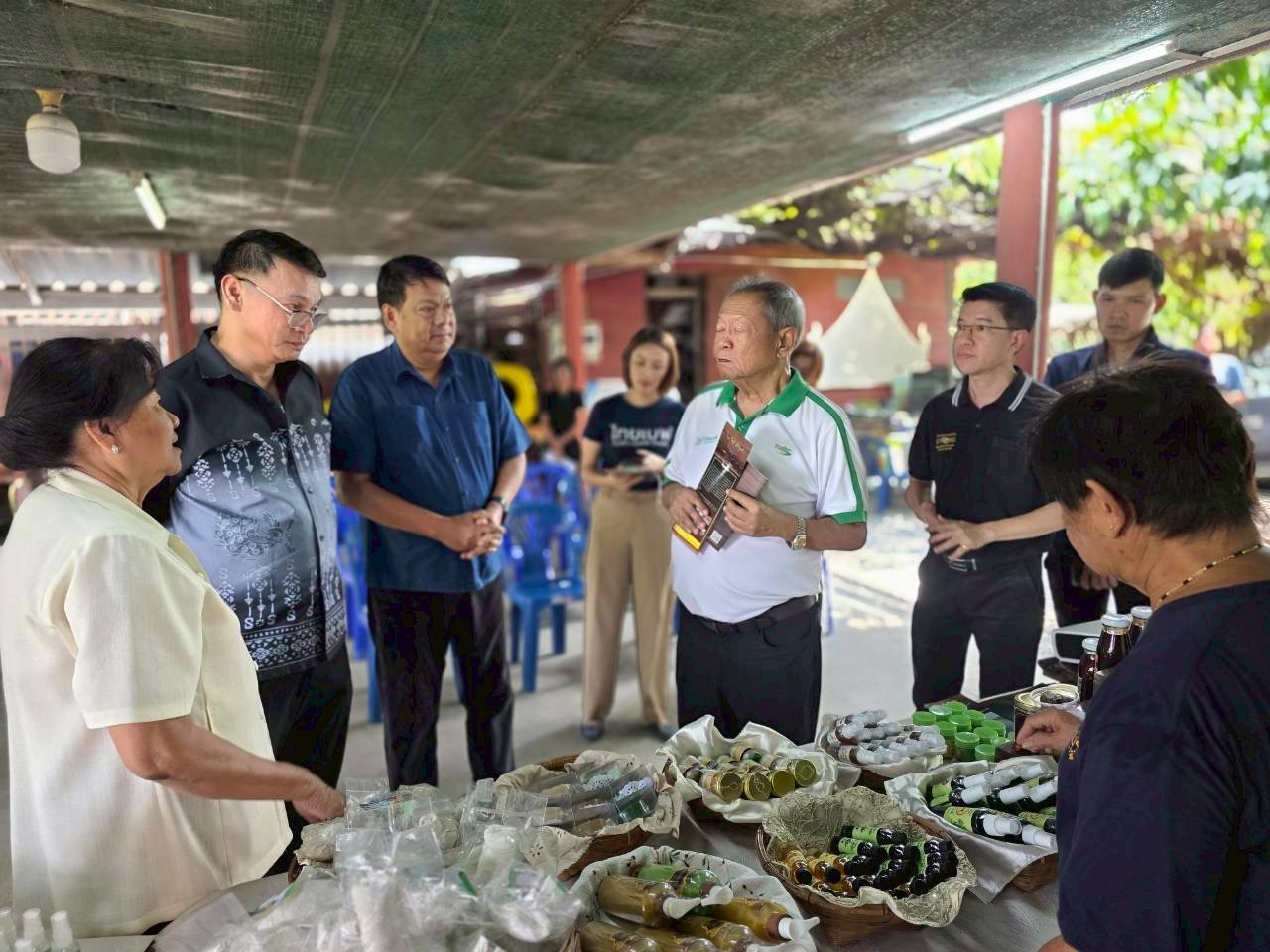 จากนั้นในช่วงบ่าย ได้ไปติดตามการดำเนินงานกลุ่มวิสาหกิจชุมชนศาลากลางรักษ์พัฒนา หมู่ที่ 1 ตำบลปลายบาง ณ สวนเกษตรลัดดาวัลย์ ซึ่งเป็นกลุ่มเป้าหมายโครงการด้วยจงรักและภักดี สร้างประโยชน์ให้ชุมชน ประชาชนมีความสุข พร้อมรับชมการสาธิตการแปรรูปผลิตภัณฑ์จากน้ำผึ้งชันโรง ซึ่งผลิตภัณฑ์เด่นของชุมชน เป็นผลิตภัณฑ์เพื่อสุขภาพ โดยเป้าหมายของโครงการจะมีการต่อยอดและพัฒนาผลิตภัณฑ์ผึ้งชันโรง ให้เป็นศูนย์เรียนรู้เชิงสุขภาพและเชื่อมโยงการท่องเที่ยวชุมชนคนปลายบาง เพื่อสร้างรายได้และความเข้มแข็งให้กับเศรษฐกิจฐานรากต่อไป