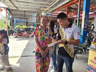 (26 ต.ค.67) ที่ร้านบ้านยาง ริมถนนเลียบทางรถไฟ ตั้งอยู่เลขที่ 12 ม.8 ต.หนองปลาไหล อ.บางละมุง จ.ชลบุรี ครอบครัวแหวนประดับ นำโดย พ.ต.อ.นิทัศน์ แหวนประดับ หรือ ผกก.เบียร์ ผกก.ปพ.บก.สส.ภ.2 (ผู้กำกับหน่วยปฏิบัติการพิเศษ ภาค 2) ได้จัดทำบุญทิศส่วนกุศลให้กับคุณแม่จิตร (พรวิภา) แหวนประดับ ที่ล่วงรับไปแล้วเมื่อ 5 ปีก่อน โดยการตั้งโต๊ะทำบุญบริจาคข้าวหอมมะลิอย่างดีจำนวน 500 ถุง ๆ ละ 5 กิโลกรัม หนักรวม 2.5 ตัน พร้อมเงินสดจำนวน 100 บาท ให้กับผู้ป่วย คนพิการ คนยากไร้ และชาวบ้านในพื้นที่ละแวกดังกล่าว เพื่อนำไปบริโภคในครอบครัว เป็นการช่วยเหลือและช่วยบรรเทาความเดือดร้อนในระดับหนึ่ง ซึ่งบรรยากาศพบว่ามีประชาชามารอรับบัตรคิวและต่อแถวเป็นจำนวนมาก โดยมีเจ้าหน้าที่เทศกิจเมืองพัทยา ได้เข้ามาช่วยจัดระเบียบ และอำนวยความสะดวกให้กับประชาชนที่เดินทางมารับข้าวสารในครั้งนี้
