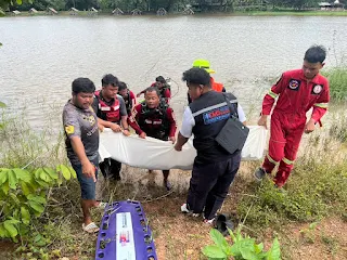 ถึงที่เกิดเหตุ สอบถามนายพิชัย ศรีศักดิ์ อยู่บ้านเลขที่ 555 ม.9 ตำบลตะกุดไร อำเภอชนแดน จังหวัดเพชรบูรณ์ ผู้พบเห็นเล่าให้ฟังว่าตนและภรรยาได้มานั่งตกเป็ดอยู่บริเวณริมอ่าง เห็นผู้ตายขับรถสามล้อพ่วงมากับแม่เพื่อที่จะมางมหอยในบริเวณนั้น จากนั้นผู้ตายได้นำเชือกมัดกับกะละมังแล้วคล้องผูกติดเอวไว้ ที่แรกตนคิดว่าผู้ตายดำน้ำหาหอยตามปกติ แต่รู้สึกผิดสังเกตุว่าทำไมดำน้ำนานจัง จนกระทั่งแม่ของผู้ตายมาเดินตามหา ตนจึงได้โทรแจ้งกู้ภัยให้มาช่วยค้นหา พอทราบรายละเอียดและจุดจมที่แน่นอนแล้วทางทีมนักรน้ำของชูชีพกู้ภัยชนแดนสงเคราะห์ จำนวน3 นายใช้เวลาค้นหา ประมาณ 10นาที ก็พบร่างผู้เสียชีวิต ทราบชื่อต่อมาชื่อนายจันทร์ตะณา แสนบุญ อายุ 41 ปี อยู่บ้านเลขที่ 445 ม.6 ตำบลท่าข้าม อำเภอชนแดน จังหวัดเพชรบูรณ์ จมอยู่ห่างจากฝั่งประมาณ 10 เมตร ความลึกที่ประมาณ 1.80 เมตร สวมเสื้อเชิ้ตแขนยาวสีฟ้ากางเกงขายาวสีดำด้านเอวมีเชือกไนลอนผูกติดไว้กับกะละมัง นอนคว่ำหน้าอยู่กับพื้นดินใต้ท้องน้ำ นางปั่น จุนสายพันธ์ อายุ 65 ปี แม่ของผู้ตาย ขณะเศร้าโศกเสียใจเล่าให้ฟังทั้งน้ำตาว่า ตนกับลูกได้ขับรถ เครื่องสามล้อพ่วงข้าง ออกจากบ้าน เพื่อมางมหอย หาปลา กันเป็นประจำซึ่งตนและลูกได้แยกย้ายกันหาเมื่อ เมื่อได้เวลา ตนกลับ จะกลับบ้าน จึงมาหาลูกที่ ดังกล่าว บริเวณดังกล่าวแต่ แต่ไม่พบลูกจึงเดินไปถามคนที่นั่งตกปลาอยู่จึงได้ทราบว่าลูกตนได้จมน้ำเสียชีวิตดังกล่าว อย่างไรก็ตามเจ้าหน้าที่ตำรวจจึงมอบศพให้เจ้าหน้าที่กู้ภัยส่งศพพิสูจน์ที่โรงพยาบาล ชนแดนเพื่อหาสาเหตุการเสียชีวิตที่แท้จริงต่อไปภาพข่าว มนตรี นรดี