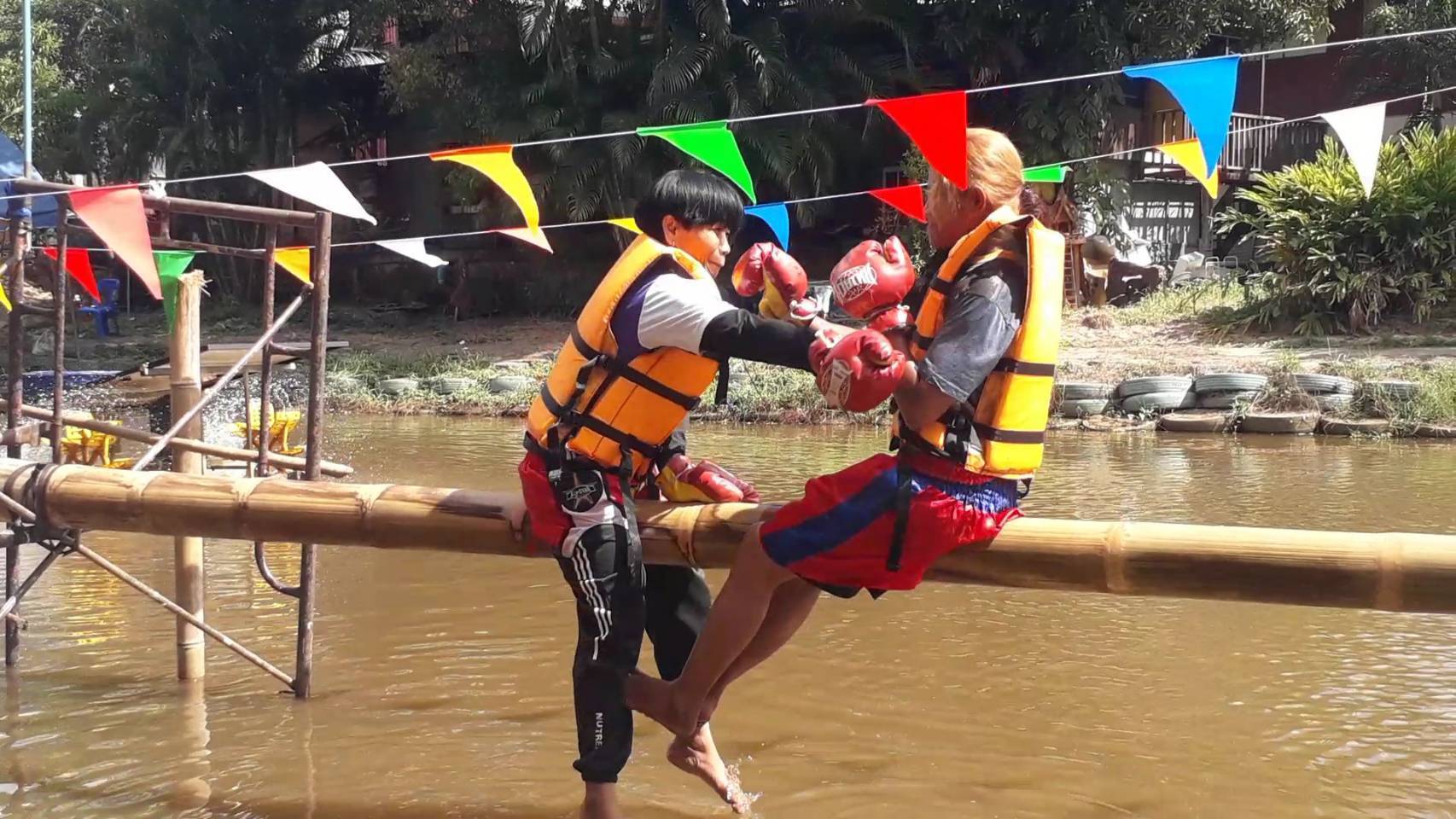 กีฬาชกมวยทะเล ทางวัดได้ใช้ไม้ไผ่หวานกอใหญ่ที่หาได้ง่ายในตําบลรัตนบุรีนํามาทําเป็นเวที่ประลองกันโดยใช้น้ำมันหมูแบบโบราณทาฉะโลมให้ลื่นๆ คู่ชกคนใดแข็งแกร่งสามารถนั่งชกคู่ต่อสู้ได้นานก็สามารถเอาชนะคู่ต่อสู้ได้ มวยทะเลที่จัดในปีนี้มีทั้งมวยชายและมวยหญิง ชึ่งแต่ละชุมชน(หมู่บ้าน)ที่ส่งมาชกกันมันหยดจนทําให้แฟนๆกองเชียร์มามาเชียร์นักมวยชุมชนตัวเองต่างส่งเสียงเชียร์ดังลั่นคลองห้วยแก้วกันเลยที่เดียว....