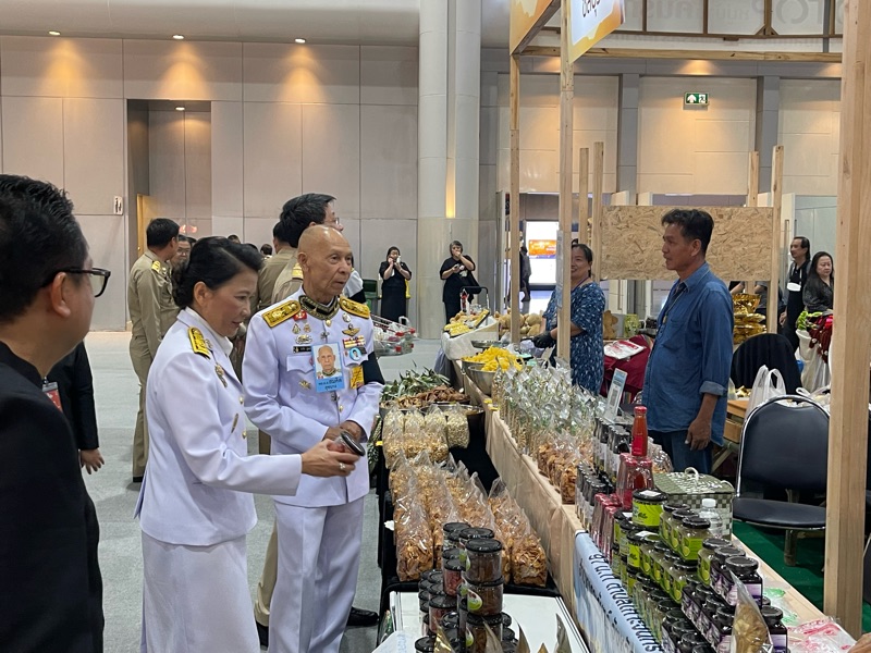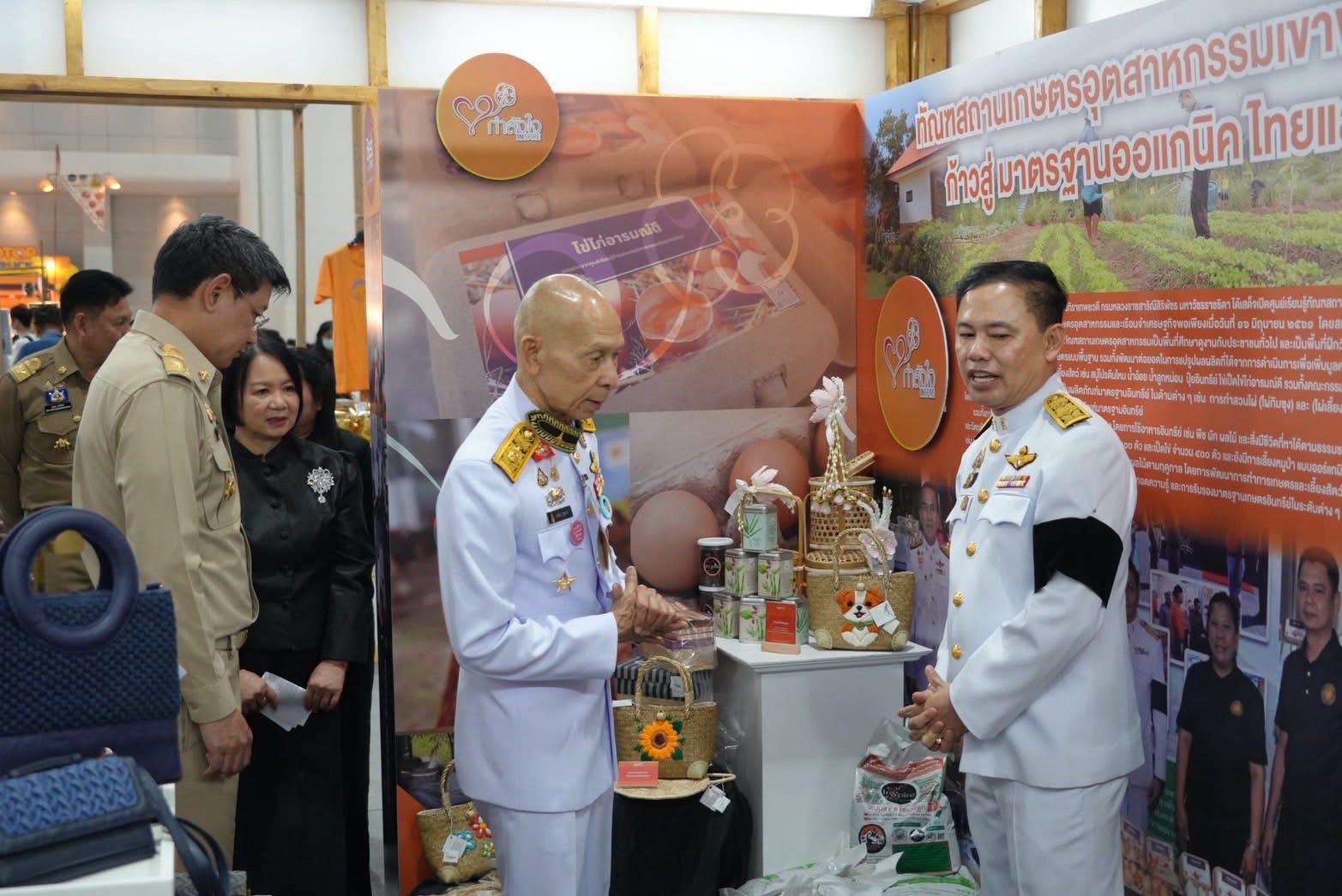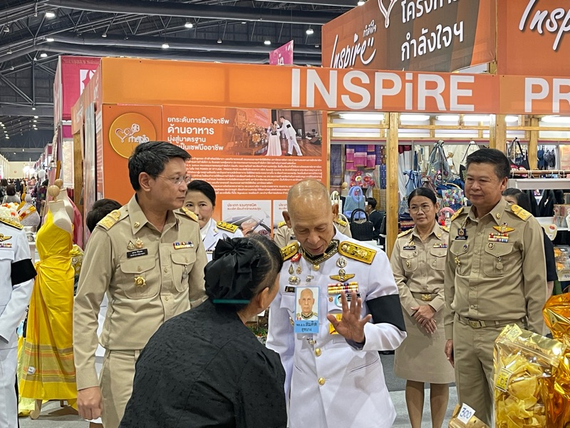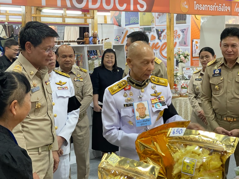 พลอากาศเอก สมคิด สุขบาง กรมวังผู้ใหญ่ประจำพระองค์ สมเด็จพระเจ้าลูกเธอ เจ้าฟ้าพัชรกิติยาภา นเรนทิราเทพยวดี กรมหลวงราชสาริณีสิริพัชร มหาวัชรราชธิดา และรองประธานคณะกรรมการกองทุนกำลังใจ ได้เยี่ยมชมร้าน โครงการกำลังใจ Inspire ภายในงาน OTOP CITY 2025