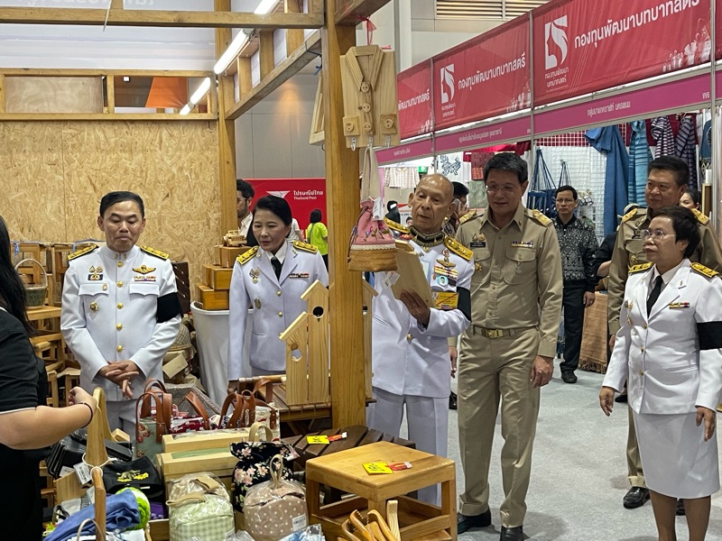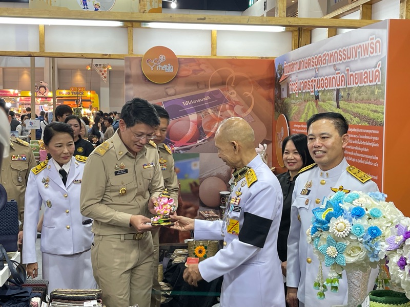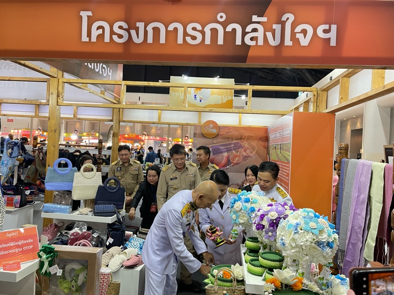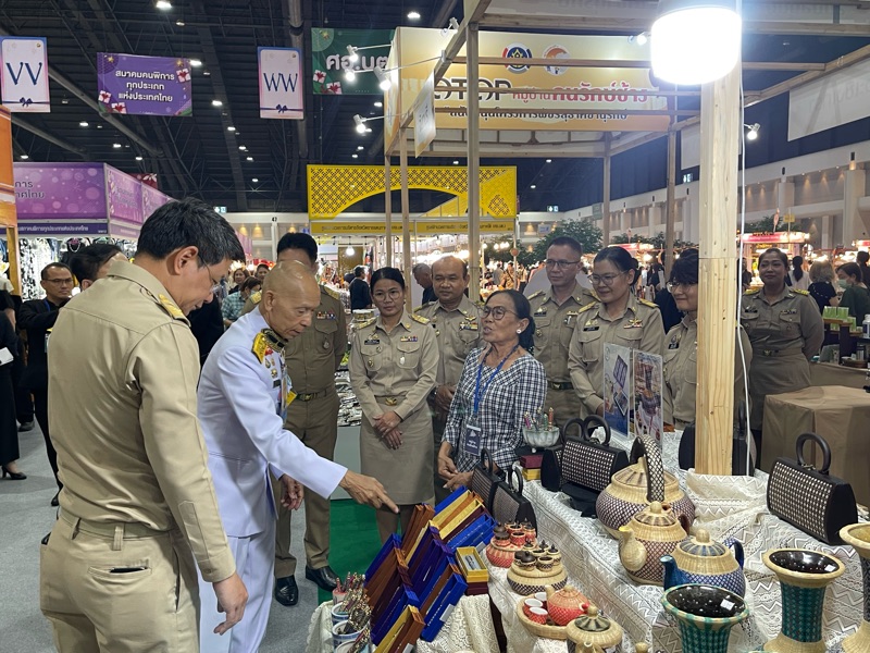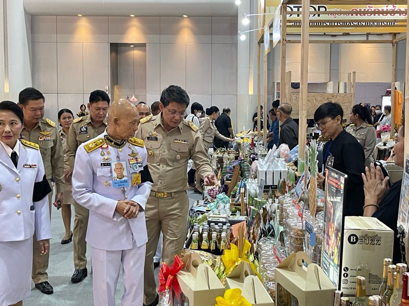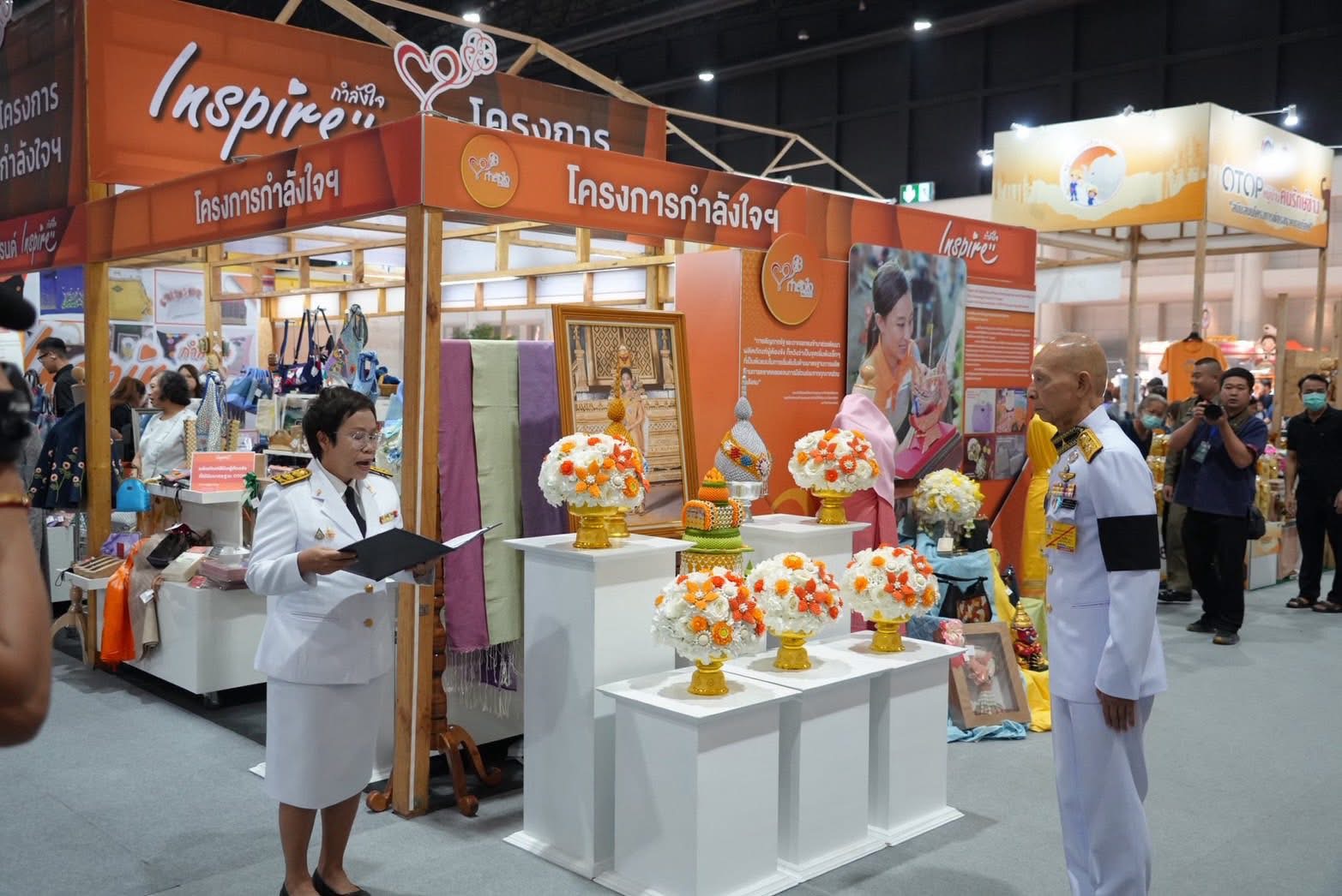 พลอากาศเอก สมคิด สุขบาง กรมวังผู้ใหญ่ประจำพระองค์ สมเด็จพระเจ้าลูกเธอ เจ้าฟ้าพัชรกิติยาภา นเรนทิราเทพยวดี กรมหลวงราชสาริณีสิริพัชร มหาวัชรราชธิดา และรองประธานคณะกรรมการกองทุนกำลังใจ ได้เยี่ยมชมร้าน โครงการกำลังใจ Inspire ภายในงาน OTOP CITY 2025